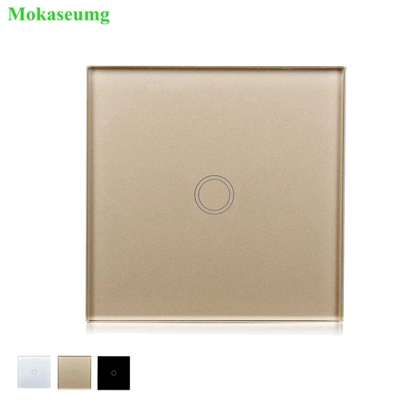 Big Stock Sale Touch Wall Light Switch 1 Gang 1 Way EU/UK Standard Home Wall Switch White Crystal Glass Panel Touch Switch For Bulb Light 220V