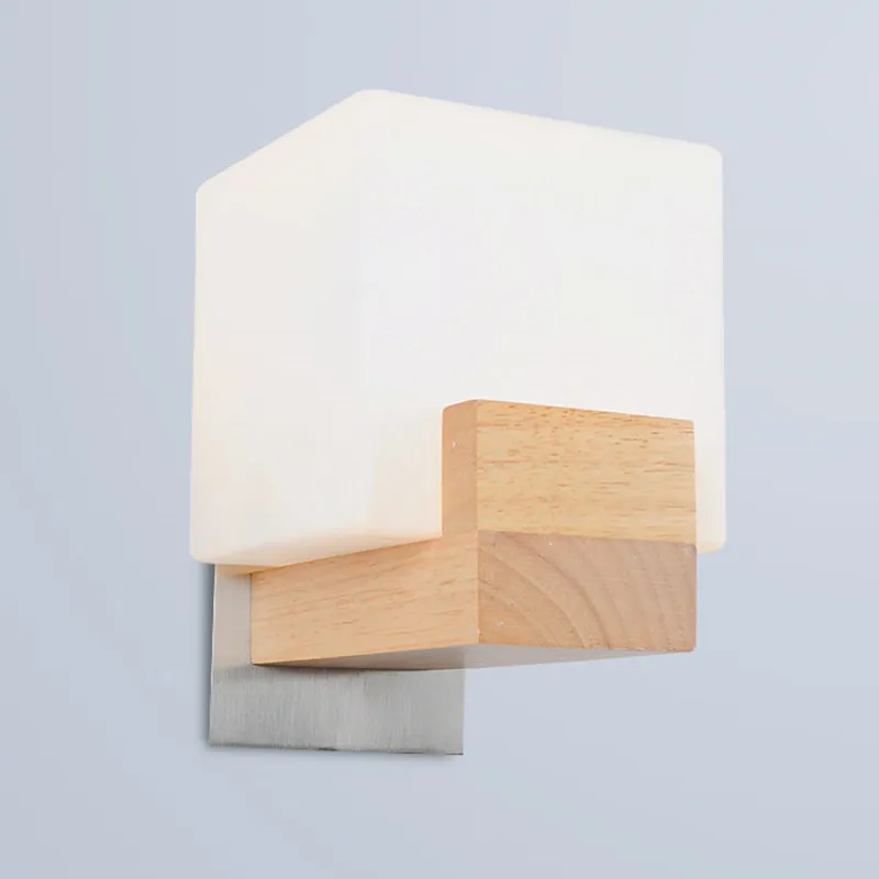 Modern wood wall lamps White glass lamp shade Dining-room sitting room corridor LED Indoor lighting light fixture